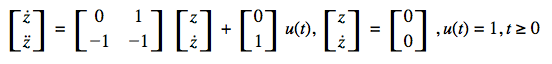 $$ \left\{\begin{array}{l} \dot z = \dot z\\ \ddot z = - z - \dot z + u(t) \end{array} \right. $$
