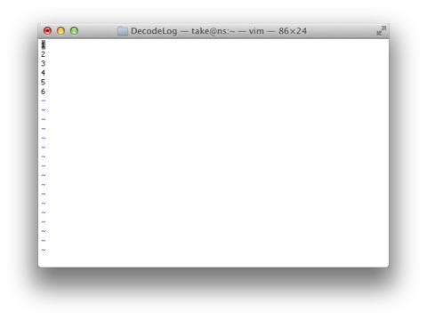 これまで、viewを使ってファイルの中身を見てきましたが、エディタを終了には:qと改行を入力します。