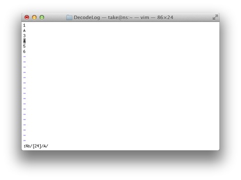 :%s/[24]/A/と改行