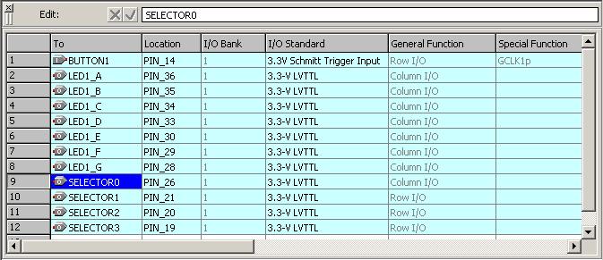 HDL-CQ1では、SELECTOR信号で7セグメントLEDを切り替えているため、 特集の第4章の例題は1個の7セグメントLEDを使うようにしました。