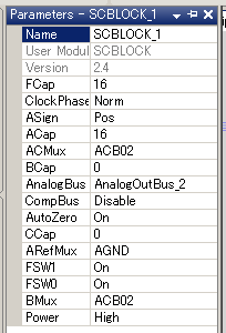 PGAのパラメータ設定で「未設定」項目があったのに気づかず、アナログ回路から出力がでなくて悩みました。