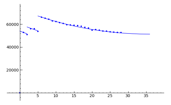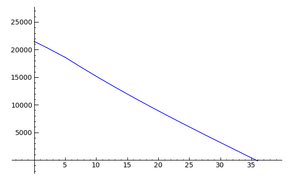 plot(f1(t, 0.0577, 0.0106, 54000, 0, 21500), [t, 0, 36])