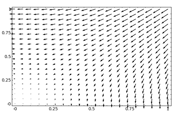 plot_vector_field((-a*y, -b*x), [x, 0, 1], [y, 0, 1])