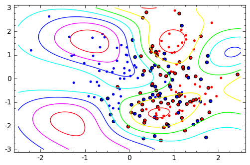カーネルには、\(exp(-\gamma||x - x'||^2)\)のガウスカーネルを使い、\(\gamma=0.45\)とします。