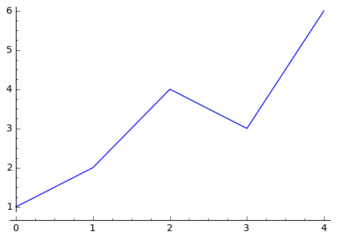 list_plot([1, 2, 4, 3, 6], plotjoined=True)
