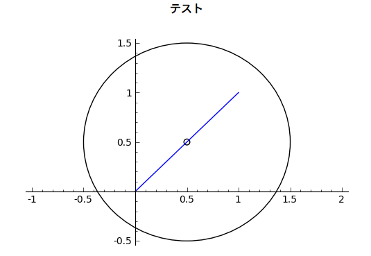 circleの例を以下に示します。座標は原点(0, 0)、半径は1です。