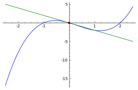 y_plt = plot(y(x0=x1), [x, -2.5, 2.5], rgbcolor='green')