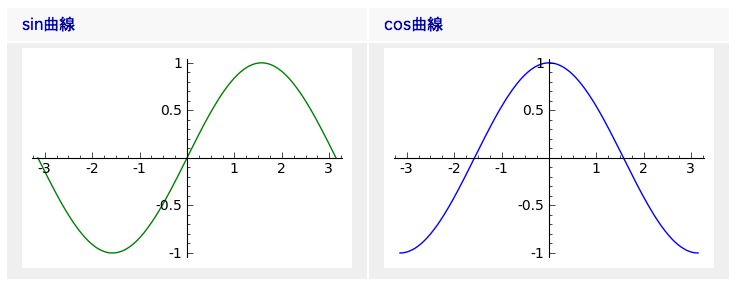 html.table([['sin曲線', 'cos曲線'], [sin_plt, cos_plt]])